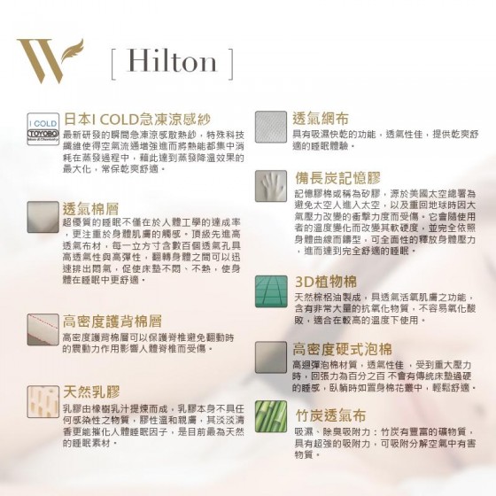 涼感呵膚 ❘ 抗敏 ❘ 防螨 ❘ 透氣 ❘ 恆溫釋壓 ▪ 床墊厚度 28 cm ▪ 軟硬度 ●●●●○○○ 等級④ ▪ 支撐與彈性的躺感 ▪ 日本ICOLD極凍涼感紗 ▪ 比利時進口之天然乳膠 尺寸規格 / 單位 (尺)