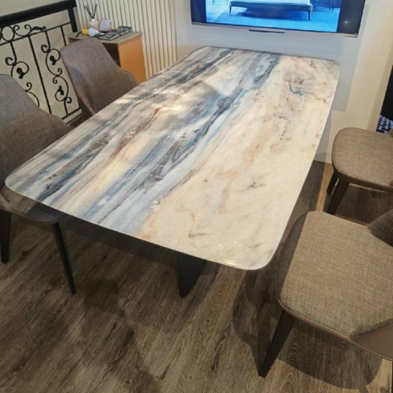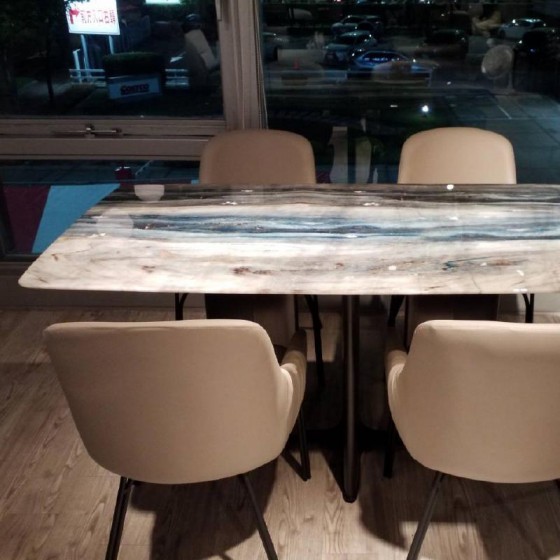 現場品材質 : 透光超晶石 + 雙色金屬腳 新竹精品家具 , 新竹餐桌推薦 , 竹北精品家具 , 竹北餐桌推薦 , 坐臥單品專業訂製