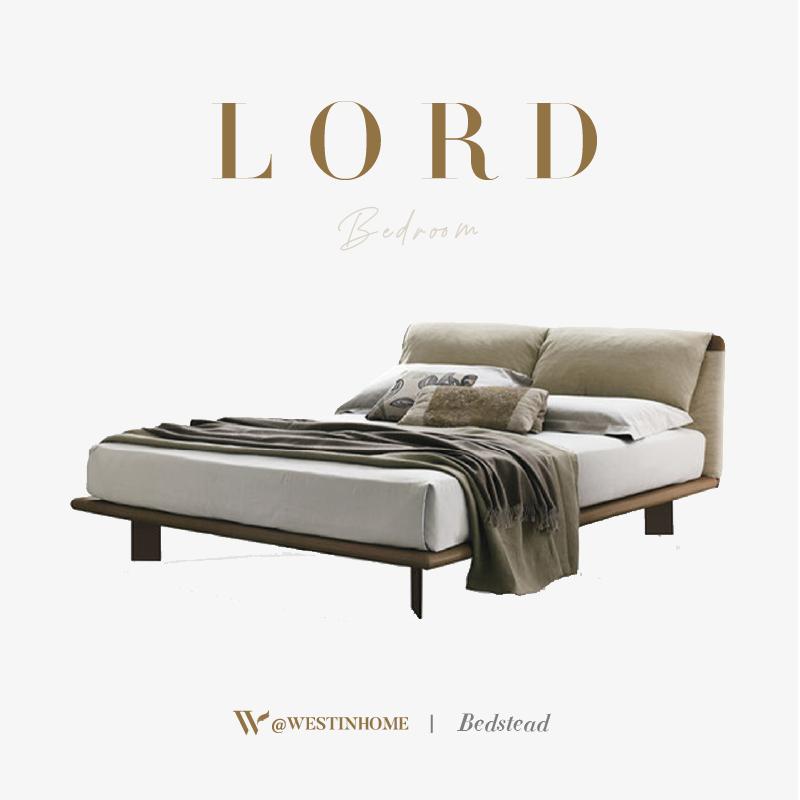 「勛爵Lord」床頭以皮革包覆設計線條簡潔俐落的框架與呈現柔軟的布藝大靠墊,完美體現代風格的美學並兼具其舒適性。搭配特意設計成斜放平板線條的金屬床腳內縮於床底,不僅不怕踢到床腳,高度還足以使掃地機器人在床底間穿梭其中。