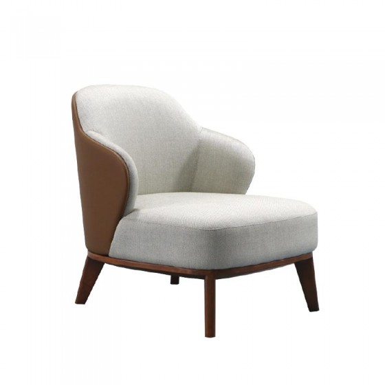 座椅面料採用質地柔軟細緻的細亞麻織物,外部佐以觸感滑順的皮革包覆飾之;細亞麻隱隱閃爍的光澤與皮革的霧感柔膩,體現出整體高雅不俗的氣度。 而在提供保護性與親密感的精緻外型底下則是扎實的實木椅腳,加深另一層次的穩固與安全感。