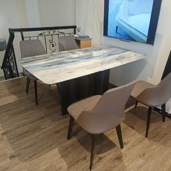 防刮 ❘ 防汙 ❘ 防高溫 ❘ 透光性高 輕奢高端天然超晶石 每一塊獨一無二的天然紋路, 鋪上精緻典雅的釉面光感,質感超然。 觸感絲滑的四邊桌角溫潤平整可預防孩子、長輩磕碰 充分考慮居家生活的體驗 。 現場品尺寸 : 160cm*90cm*H75cm